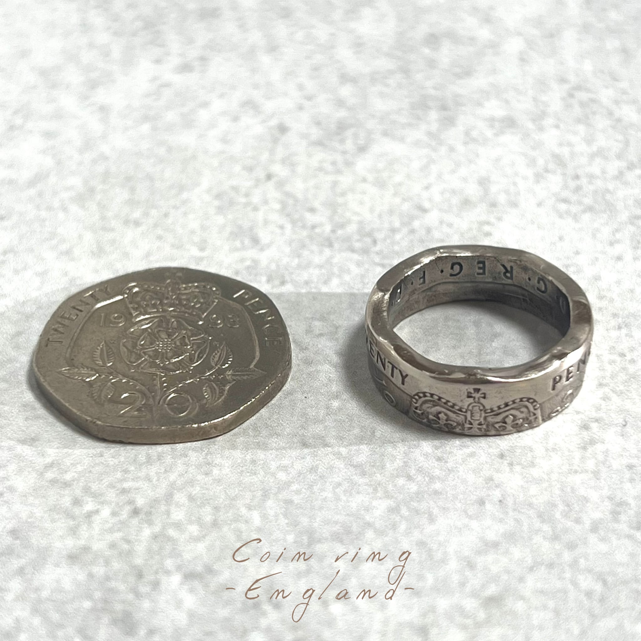 イギリスコイン(20ペンス)を使ったコインリングになります。