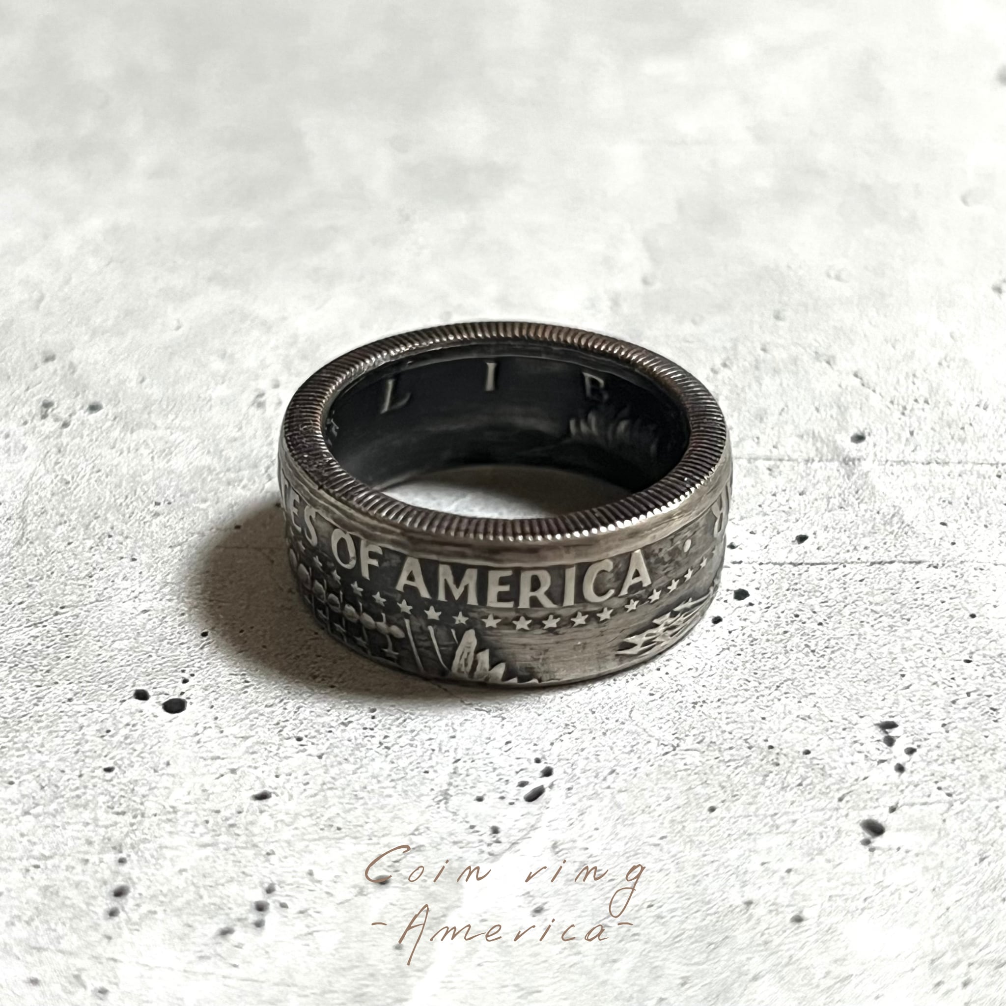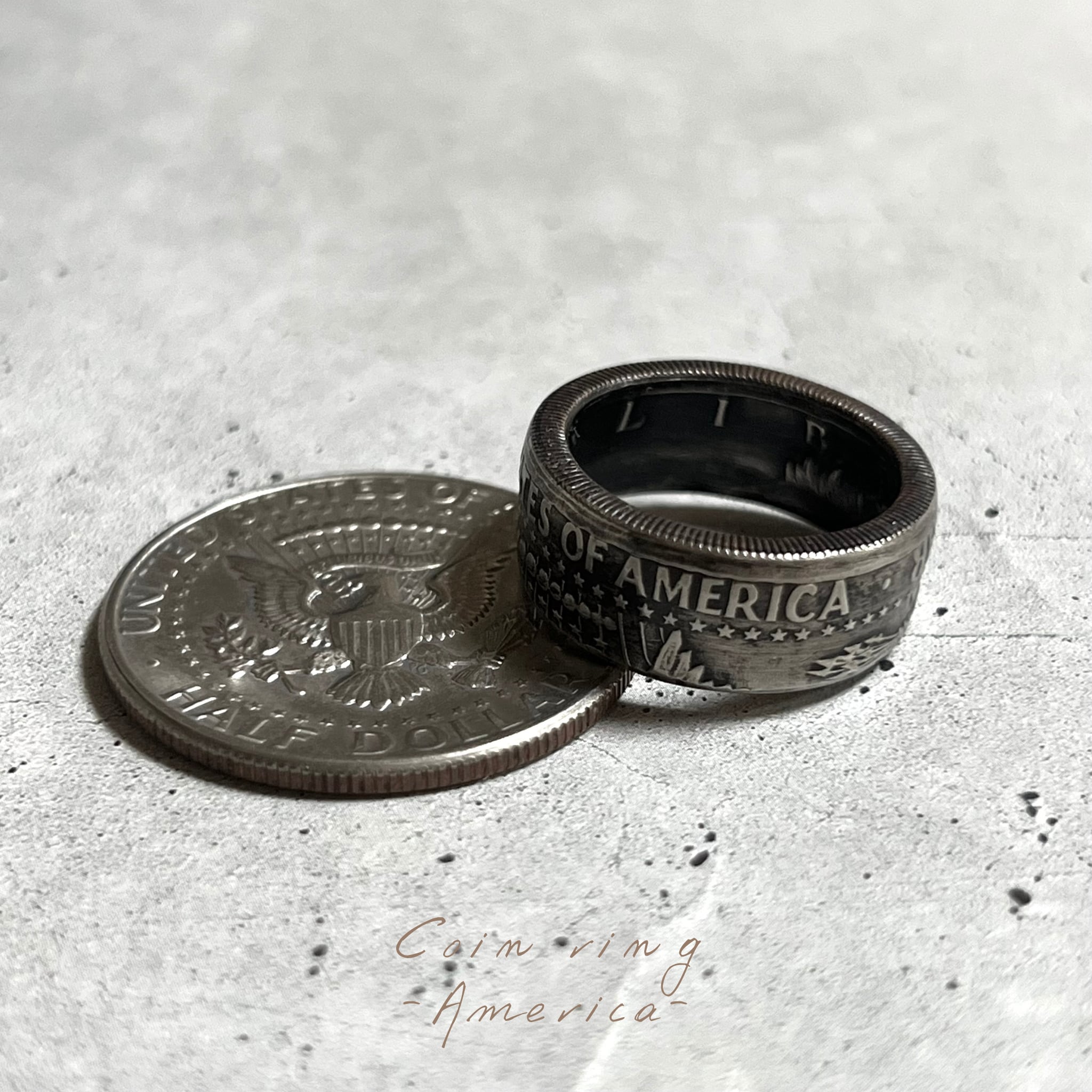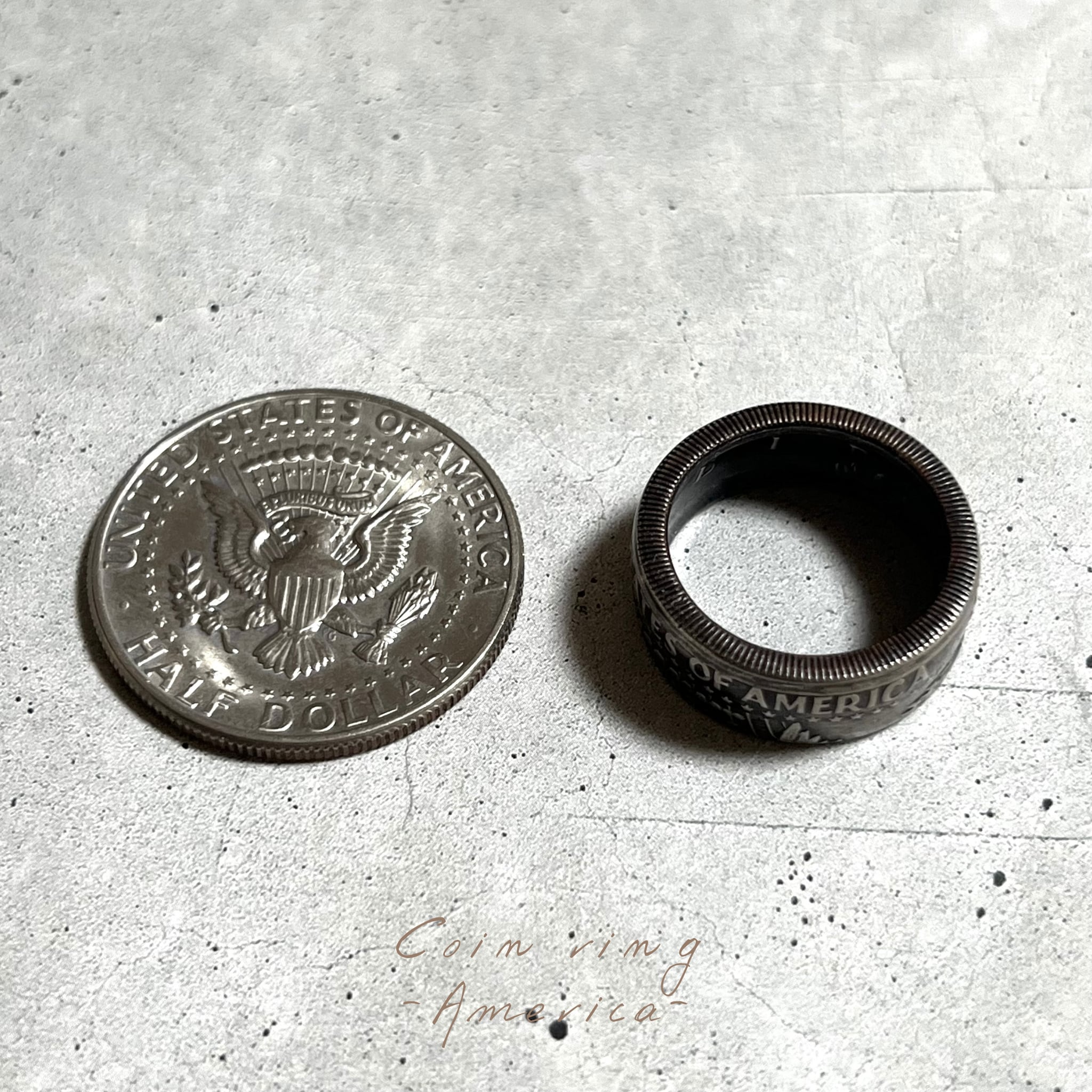 アメリカコイン(50セント)を使ったコインリングになります。