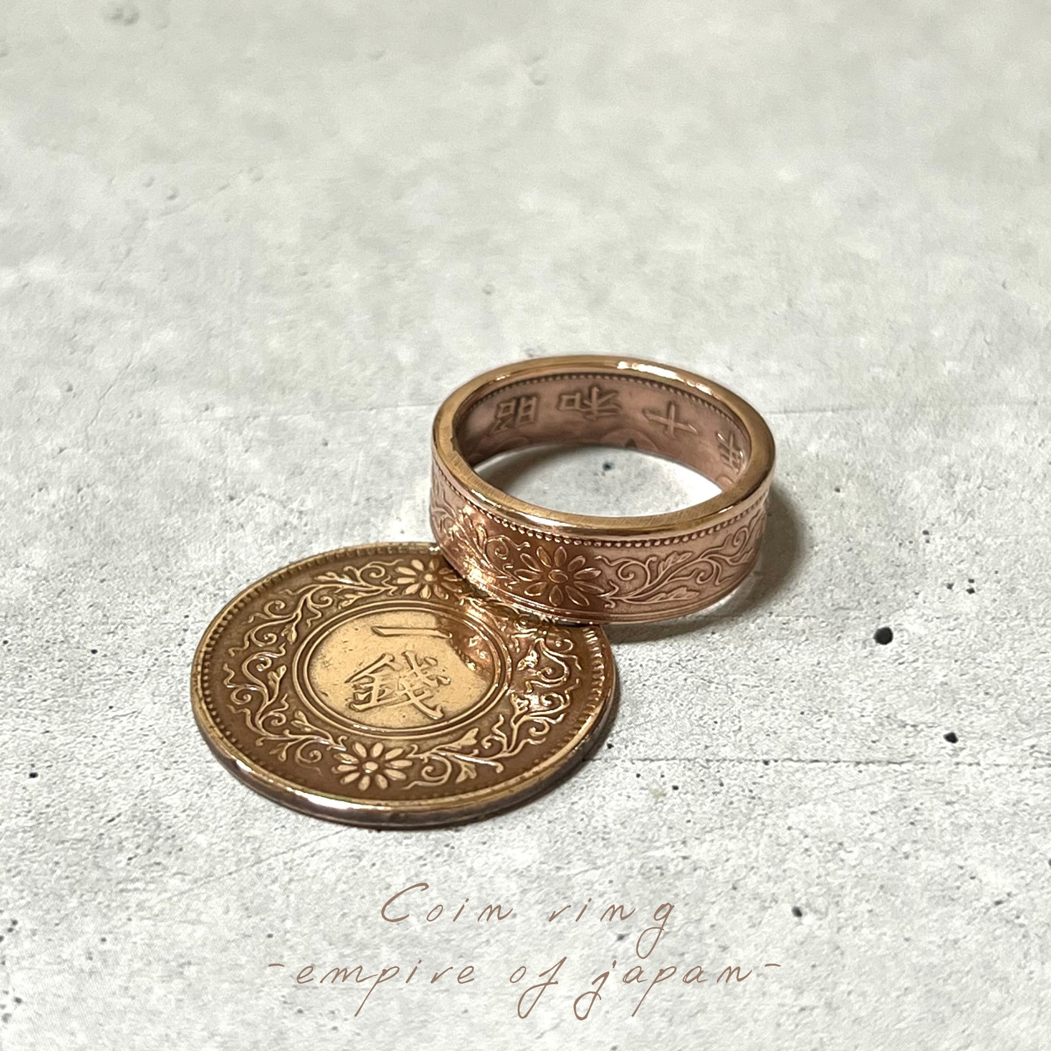 大日本帝国コイン(桐一銭青銅貨)を使ったコインリングになります。