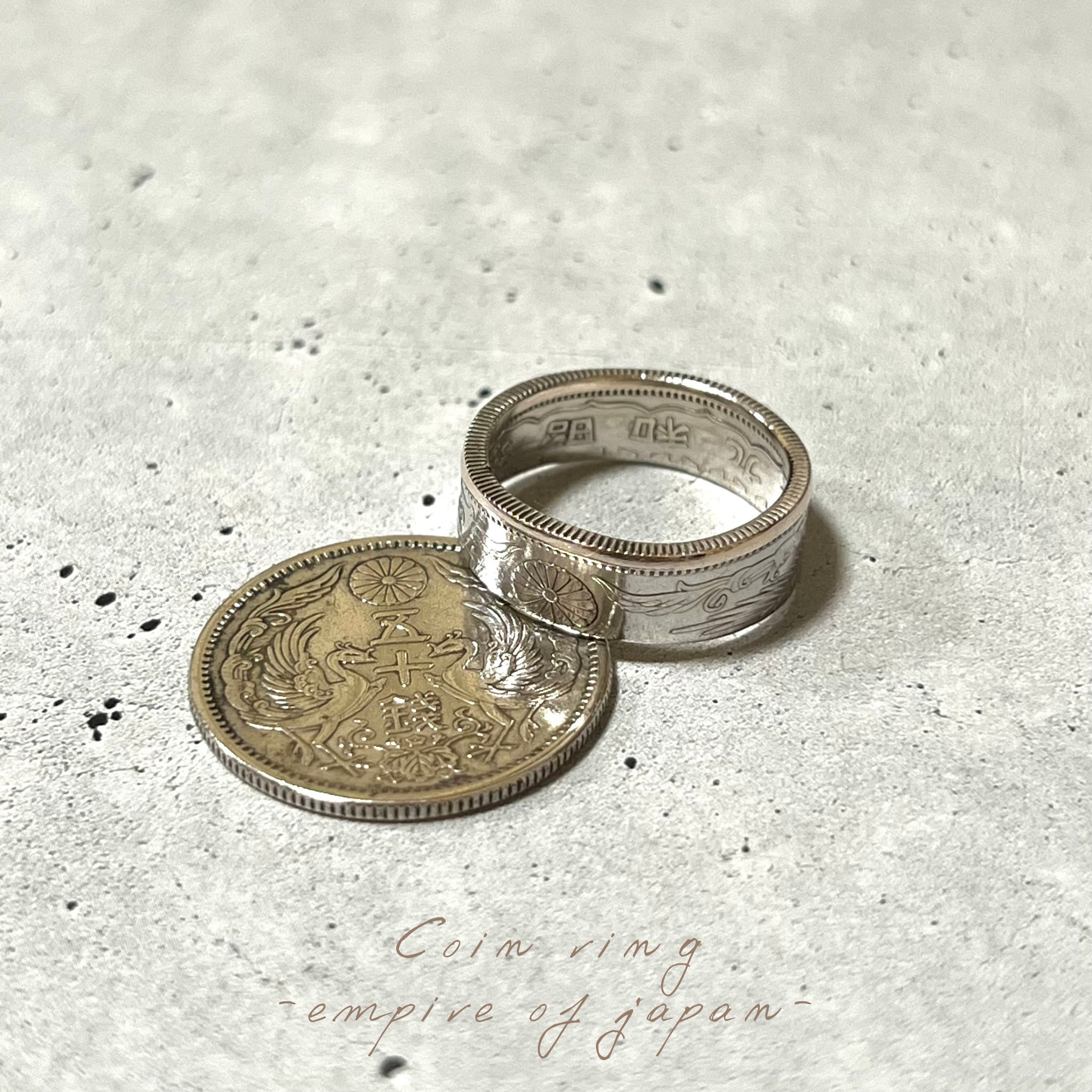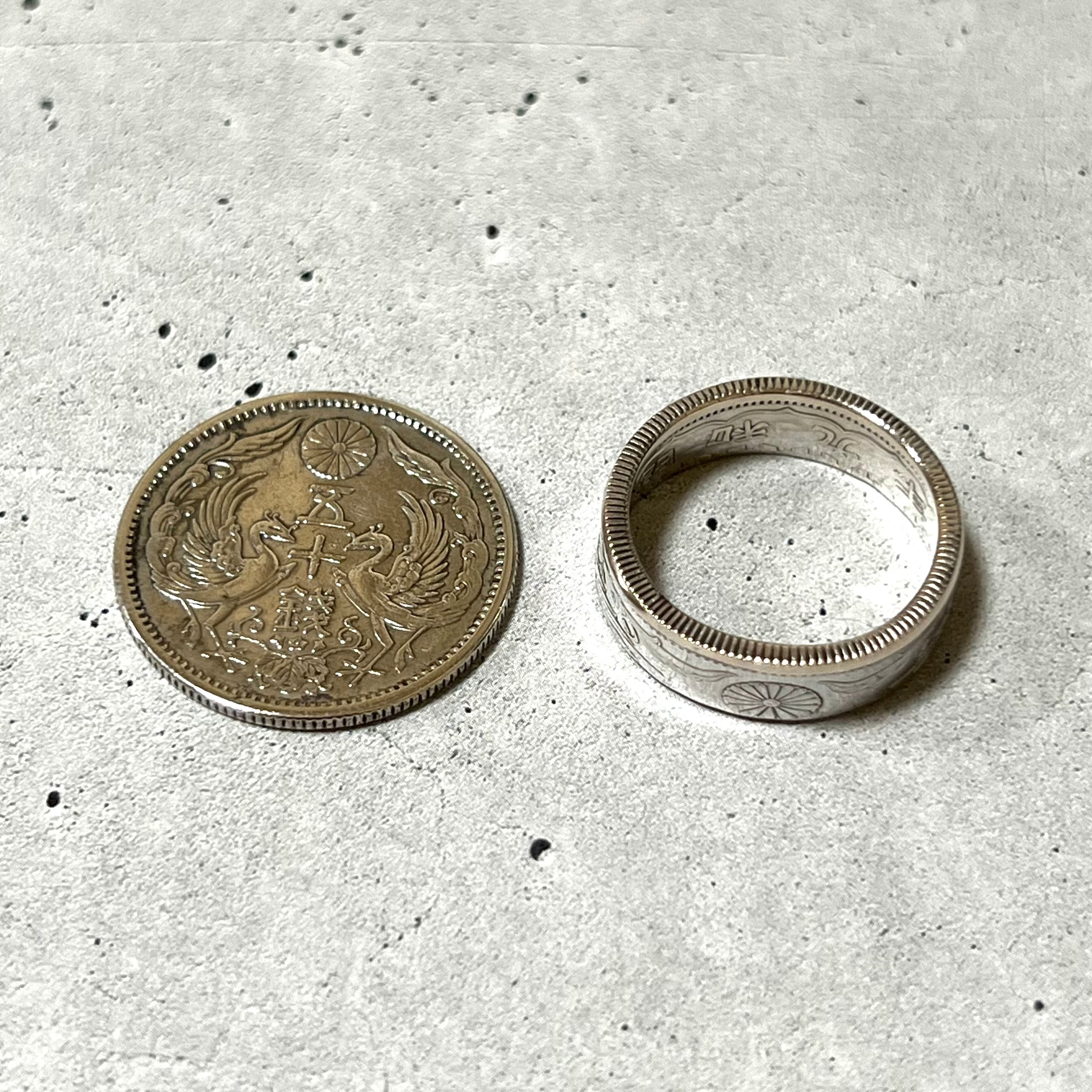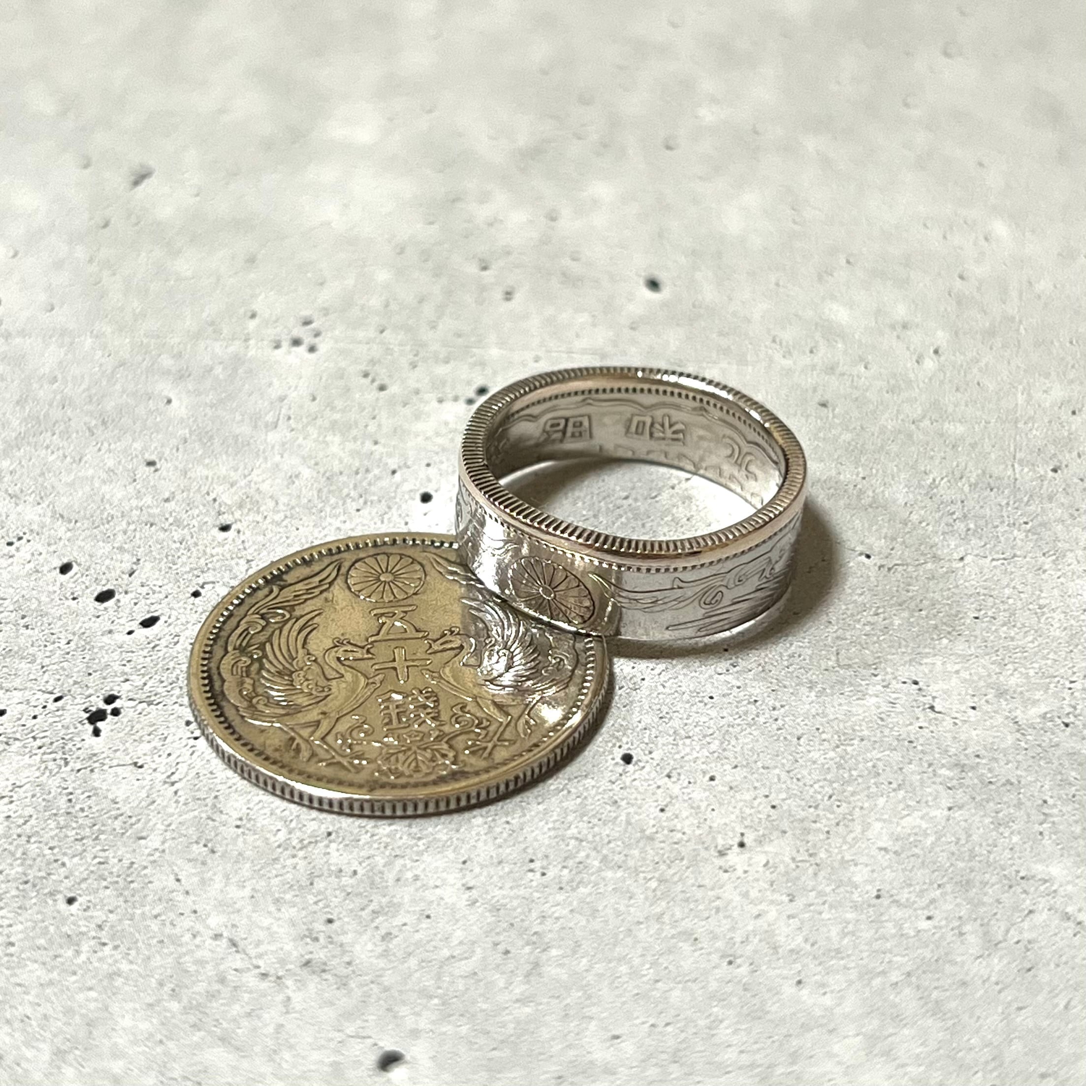 大日本帝国コイン(小型鳳凰50銭銀貨)を使ったコインリングになります。